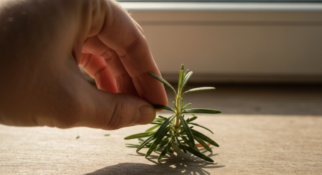 My rosemary plant grows incredibly slowly indoors. In winter, I don’t cut whole branches. Instead, I just snip the top half-inch of the green, soft needles at the tips. This gives me that piney flavor for my roasted vegetables without cutting into the woody parts of the plant. Rosemary struggles to regrow from old wood in winter, so staying in the “green zone” is critical.
