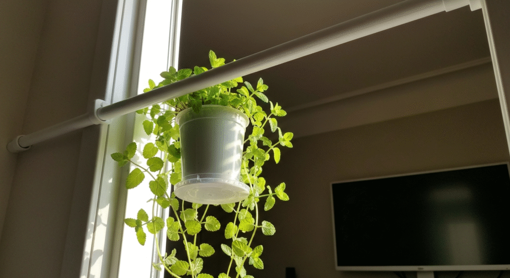 I utilized the space under my kitchen cabinets. I bought a simple rail system with hooks (like you see for hanging ladles) and hung small, lightweight buckets for my herbs. This kept the counter completely clear for chopping vegetables. The key here is to ensure the spot gets enough ambient light, or you might need to swap the plants to the window every few days.