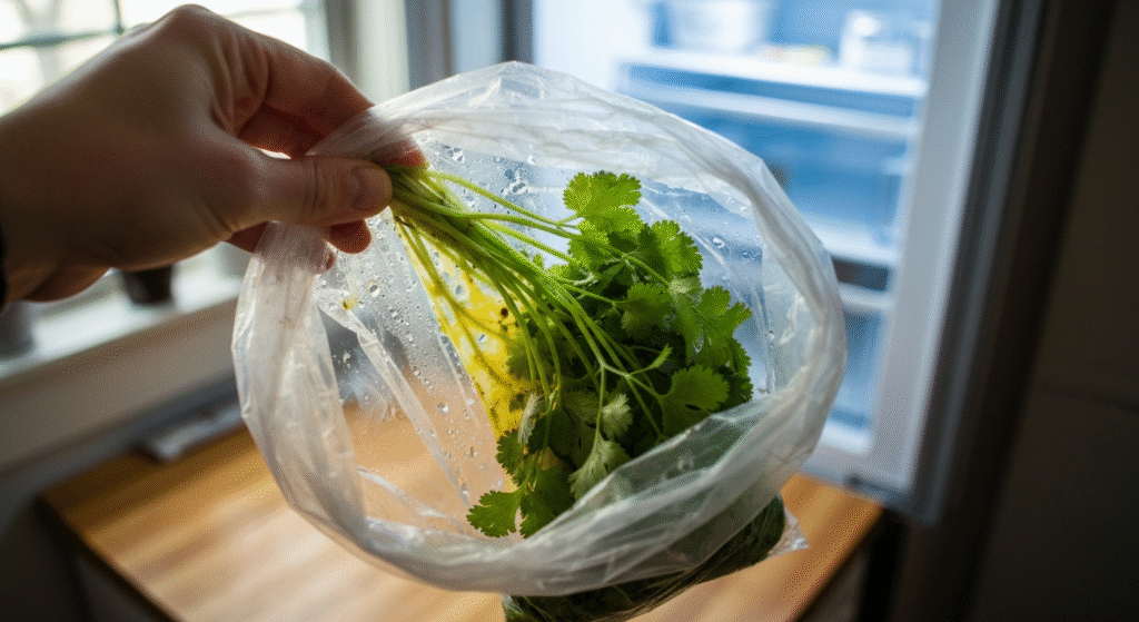 Most people make the mistake of suffocating their herbs in a sealed bag without enough moisture for the stems, or they drown the leaves. The goal of every method I use is to keep the stems hydrated while keeping the leaves dry and cool.